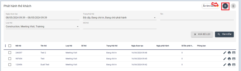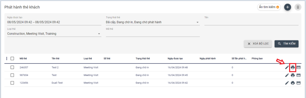 Sau đó, thẻ sẽ được thêm vào danh sách, nhấp vào biểu tượng In