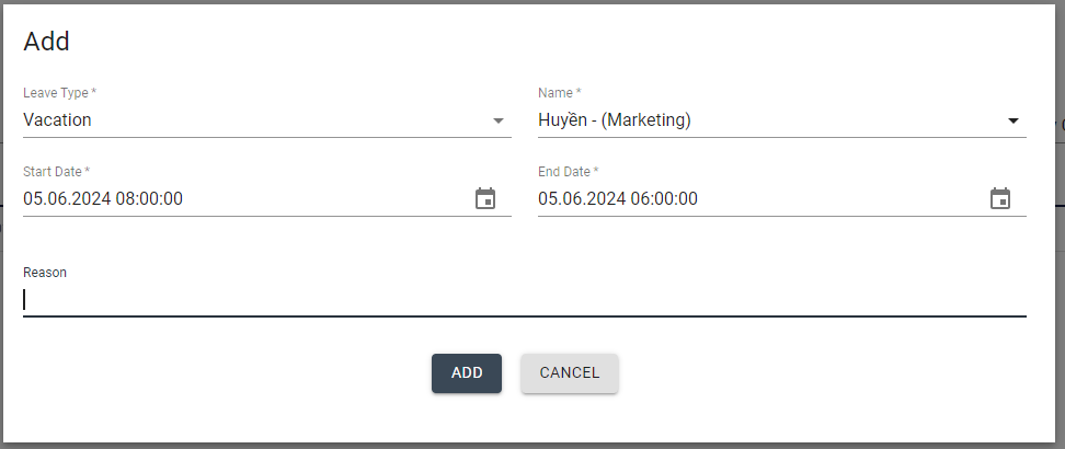 Employees can register to Leave/ Business Trip/ Vacation schedule