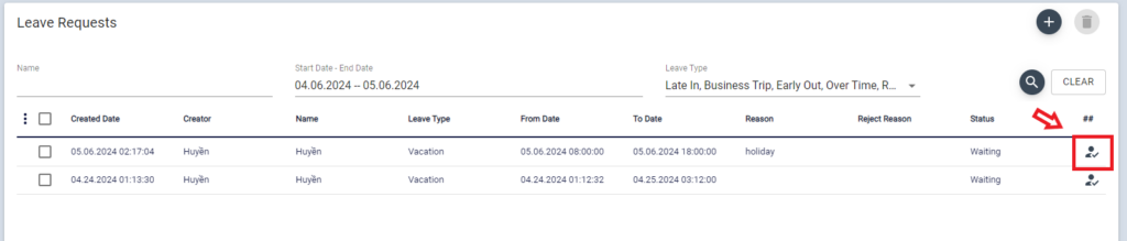 HR or the Department manager can check leave requests list and select the waiting item