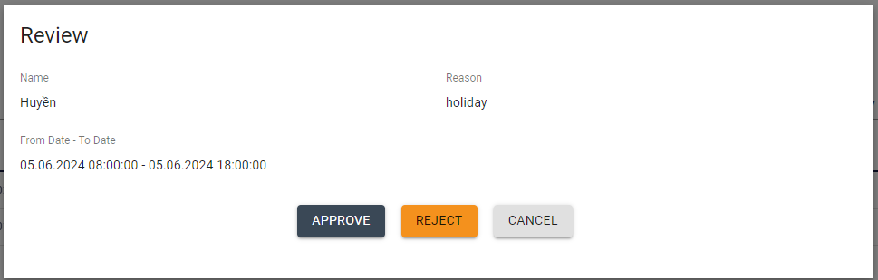 Then click Approve or Reject after reviewing the request note