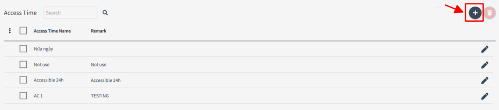 To add new Access Time, click + from the list