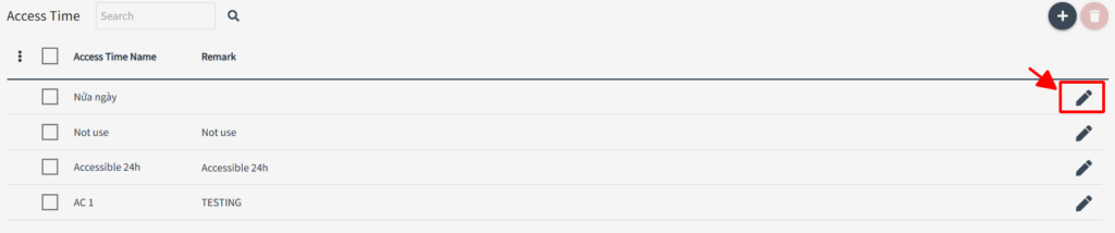 To edit existing access time, select and click edit icon