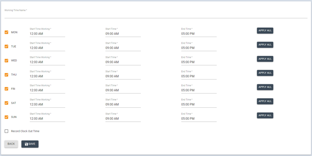 Input the name of working time, edit time schedule, then click [SAVE] button